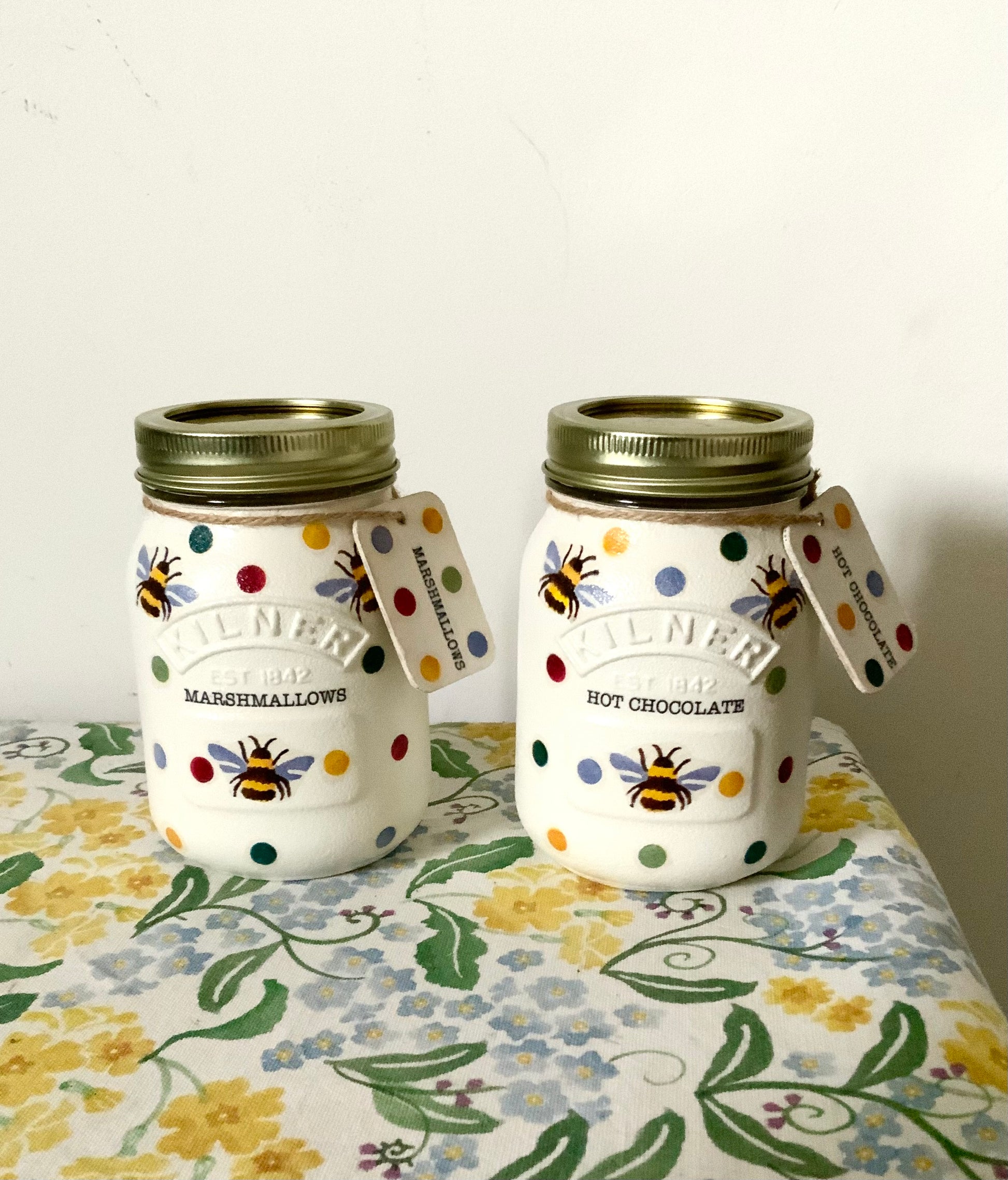 Emma Bridgewater inspired Polka dot bee kilner Hot chocolate and marshmallows jar set